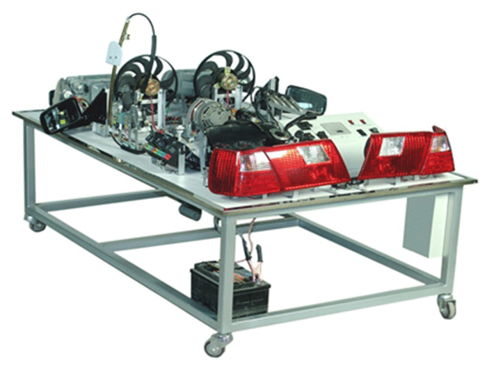 舒適系統(tǒng)、燈光系統(tǒng)、防盜儀表系統(tǒng)、點火與噴射系統(tǒng)、起動系統(tǒng)、充電系統(tǒng)、發(fā)動機電控系統(tǒng)、喇叭系統(tǒng)、電動車窗系統(tǒng)、電控門鎖及后視鏡系統(tǒng)、雨刮系統(tǒng)、音響系統(tǒng)、故障設置系統(tǒng)、移動臺架等。