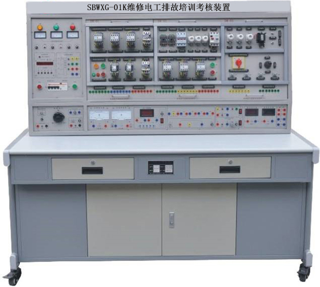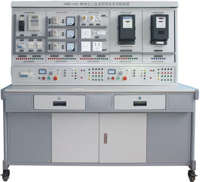 初級維修電工實訓室設備可作為維修電工考核裝置,有可在網(wǎng)孔板上進行照明器件及線路的安裝,電工儀表測量線路的安裝、電工儀表測量線路的安裝、配電盤的裝配訓練,電動機的控制線路安裝訓練。
